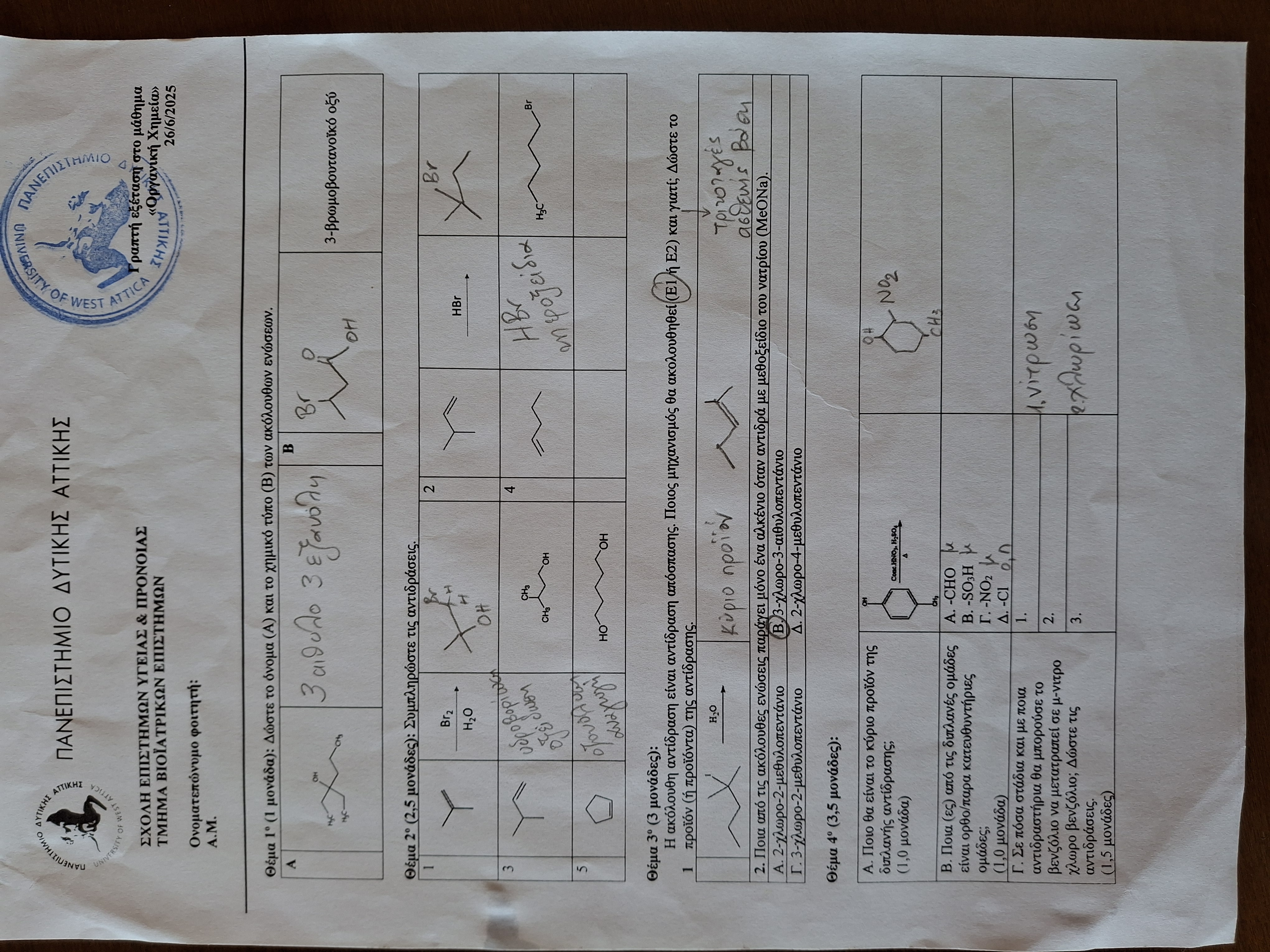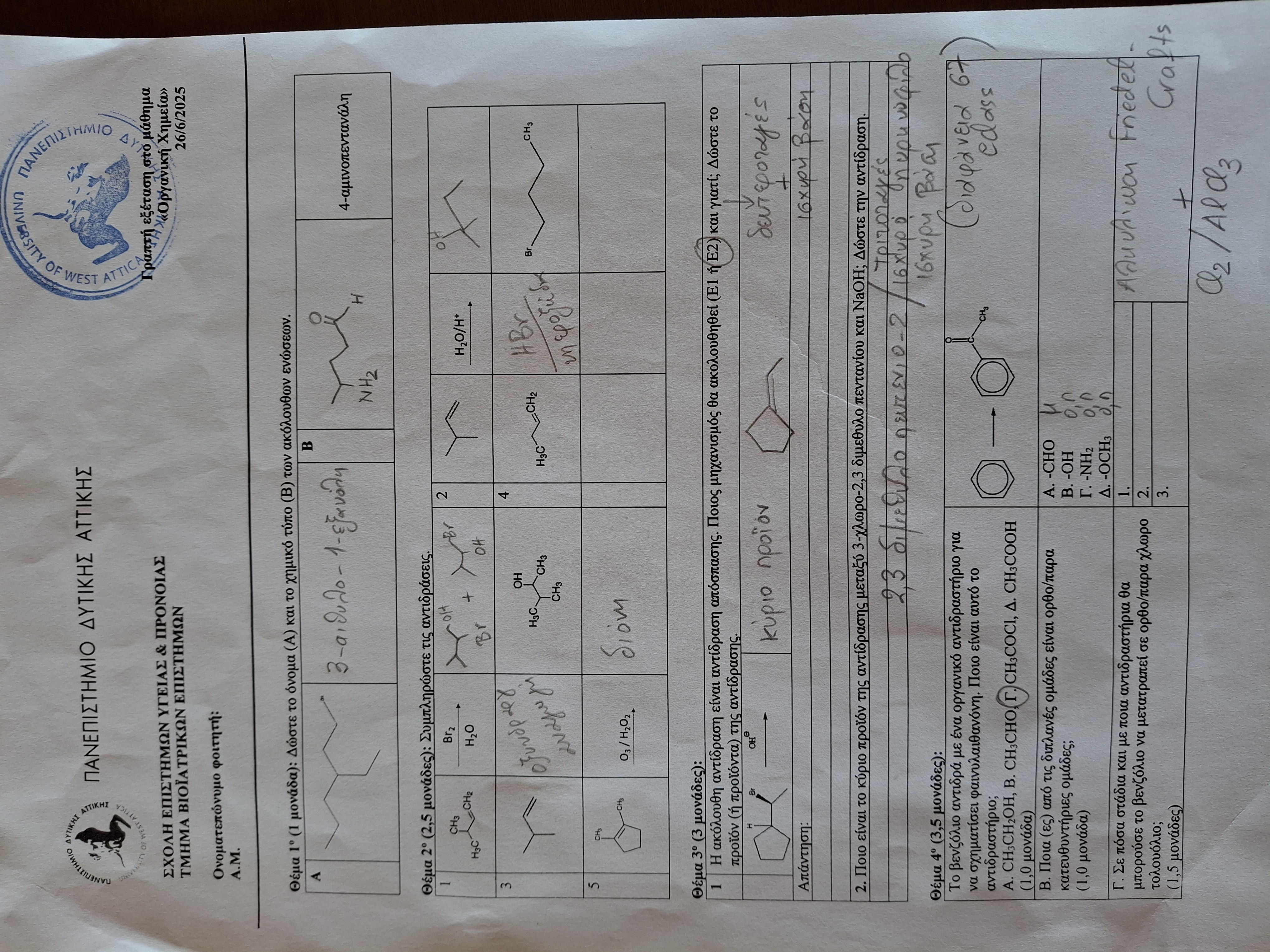 Μάθημα : ΟΡΓΑΝΙΚΗ ΧΗΜΕΙΑ